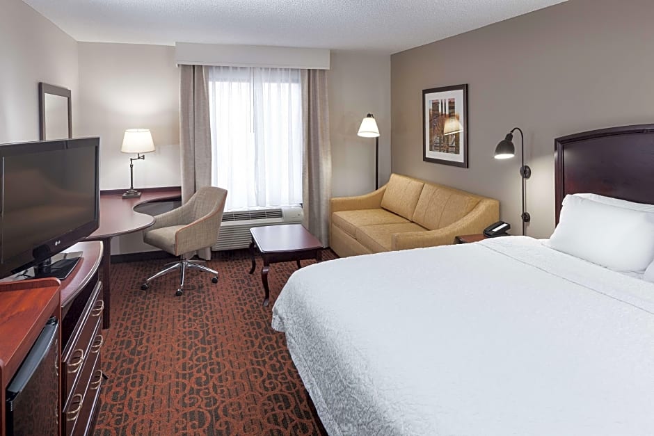 This king room features a sofa bed, work, desk, flat-screen TV, and free WiFi. A microwave, small refrigerator, and coffee machine are included.